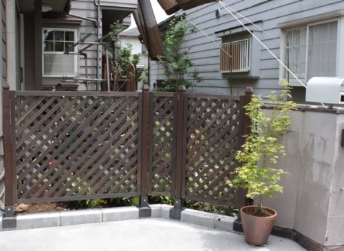 「匠シリーズ」のラティスフェンスはお客様のご希望にあわせて、高さ・横幅とも寸法をオーダーメイドできます。そのため、「微妙に空間が余ってしまってみっともない・・。」なんてことがありません。ラティスフェンスは外部からの目隠しにも効果的です。取り付けはタイラップやシュロ縄、針金を使って簡単にできます。針金は様々な色・素材がホームセンター等で販売されています。フェンスの色に近いものをお選びください。