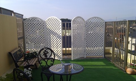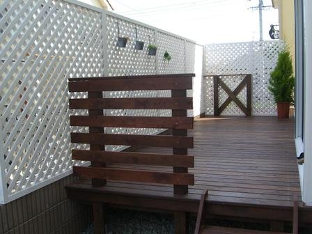 - ラティスフェンス匠はベランダや隣接するお部屋の雰囲気に合わせブラウン、チーク、パイン、ホワイトの4色よりお選びいただけます。ななめ格子、縦横格子、お好きな形でどうぞ。 ※選べる4色×4デザイン:他の色、デザインは「特注ラティスフェンス匠」で検索してご覧ください。