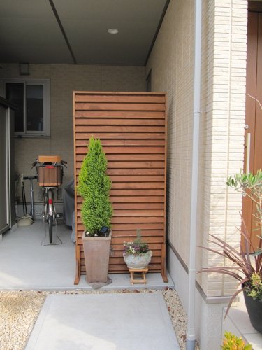 「匠シリーズ」のルーバーフェンスはお客様のご希望にあわせて、高さ・横幅とも寸法をオーダーメイドできます。そのため、「微妙に空間が余ってしまってみっともない・・。」なんてことがありません。ルーバーフェンスは外部からの目隠しにも効果的です。取り付けはタイラップや針金を使って簡単にできます。針金は様々な色・素材がホームセンター等で販売されています。フェンスの色に近いものをお選びください。