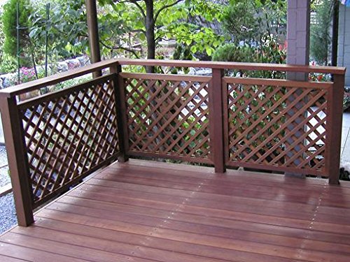 「匠シリーズ」のラティスはお客様のご希望にあわせて、縦・横の寸法をオーダーメイドできます。そのため、「微妙に空間が余ってしまってみっともない・・。」なんてことがありません。ラティスは外部からの目隠しにも効果的です。ラティスフェンスはシュロ縄や針金を使って簡単に取り付けできます。針金は様々な色・素材がホームセンター等で販売されています。ラティスの色に近いものをお選びください。 ★ウリン材の特性につきまして ※ウリンは重量がありますので、小さめのサイズがおすすめです。(参考重量:180cm×90cm:約35kg) ※天然木による手作り品のため、小口割れの入る場合ががございますが、ウリン材の特性で強度上・使用上の問題はありません。一部のヒビがささくれのようになる場合は、サンドペーパーでこすってならしてください。 ※お届け時飴色ですが、雨ざらしの環境では半年~ほどでナチュラルなシルバーグレー色になります。雨水により樹液のアクが染み出ますが、設置面の汚れは家庭用洗剤でこするときれいになります。 そのままにされても、雨により徐々になくなっていきます。 (屋根付きのベランダでは色が濃くなっていきます。)※ウリン材のウッドデッキはウリンウッドデッキ匠で検索してご覧ください。