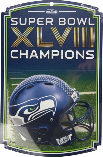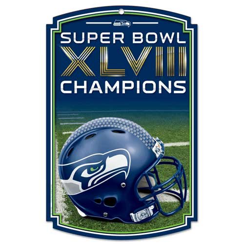 スーパーボウルの公式ロゴアメリカ製シアトル・シーホークススーパーボウルチャンピオンの木製看板。公式ライセンス, 11 " X 17 "