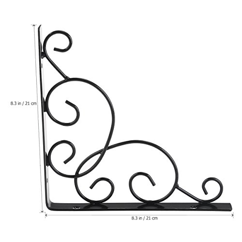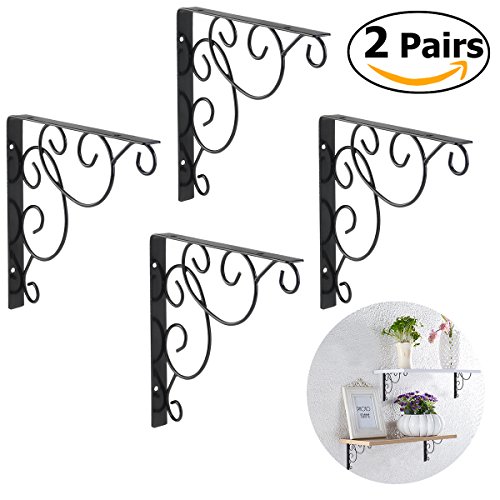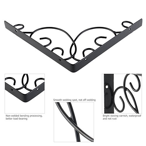WINOMO 4個 棚ブラケット 壁掛け 花模様 シェルフブラケット ブラック