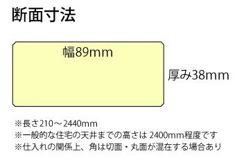 【2×4材/ツーバイフォー材】 DIY素材 国産杉(新材) 厚38mm×幅89mm×長さ1210mm ハニー色(屋内専用)