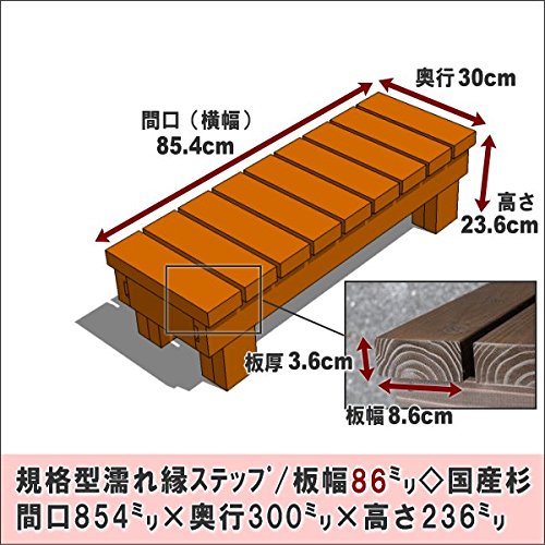 規格型濡れ縁ステップ (踏み台)/板幅86mm 国産杉 間口854mm×奥行300mm×高さ236mm DB(ダークブラウン)色