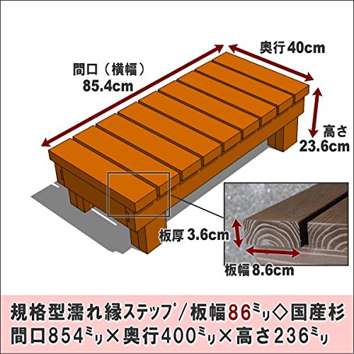 規格型濡れ縁ステップ (踏み台)/板幅86mm 国産杉 間口854mm×奥行400mm×高さ236mm WB(ホワイトベージュ)色