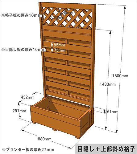 規格型 プランター付きフェンス 【フェンス+プランター】 高さ1800×幅880×奥行432mm フェンスデザイン: 目隠し+上部斜め格子 CB(チャコールブラック)色