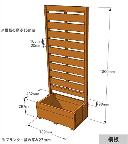 規格型 プランター付きフェンス 【フェンス+プランター】 高さ1800×幅739×奥行432mm フェンスデザイン:横板 CB(チャコールブラック)色