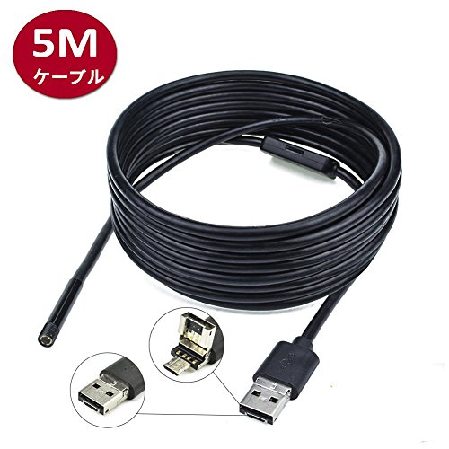 WOPOW USB接続エンドスコープ 内視鏡 2イン1硬性内視鏡 200万画素CMOS HDハンドヘルド式ボアスコープ 5mホースSony/Samsung Galaxy/Note/Nexus/OTG Android向け OTG機能付き携帯使う可能 (5M)