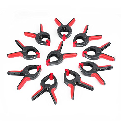 WORKPRO 10個強力なスプリングクランプセット樹脂ナイロント製 DIY工具 木工用 固定クランプ ハンドクランプ セット内容:10PC 2センチ(50mm)スプリングクランプ 最大70mmまで挟めます 特徴:強力で、耐久性に優れるソフトパッドが品物を保護します。握りやすく、操作が簡単です。 用途:一般クラフト、市場屋台、モデル作り、ホビー・木工作業、撮影用小道具、干し物用等で材料の固定などのための理想的なものです。可動式口で素材をしっかりと挟むことができます。 品質:強力のスプリングクランプは強度のために強化されたナイロン構造で快適に品物を挟みます。 注意:クランプ以外の用途には使用しないで下さい。 ナイロン製のため、高温の物には使用しないで下さい。