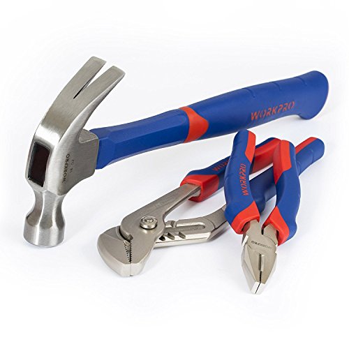 WORKPROホームツールセット ガレージツールセット 作業工具セット 大工・住まいのメンテナンス用110点組 セット内容: 1本カッター 10枚 SK5 替え刃ブレード 1本ドライバーハンドル 50点 25mm CR-V ビット 1個 5mメッジャー 1本差込角6.35mm (1/4)72山ラチェットハンドル 1本差込角9.5mm (3/8)72山ラチェットハンドル 5本コンビネーションレンチ:8mm.10mm,11mm,13mm,14mm セット内容:28本ソケット&アクセサリー 8本ドライバー:6x38mm., 3x75mm, 5x100mm, 6x150mm, PH2x38mm, PH0X75mm, PH1x100mm, PH2x150mm. 1本250mmウォータポンププライヤー 1本175mm パワーペンチ 1本 16オンスネイルハンマー 1個収納ケースが付き 備えに安心出来る110点組の厳選工具をセットアップしましたレンチ・ソケット類はクロームバナジウム鋼使用で完全熱処理済です。持ち運びやすさと、開けば一目瞭然の使いやすさです。 ケースは樹脂製で、従来のスチールケースと比べて約30%軽くなっています。 家庭でも、作業現場でも最適な商品です 硬度、トルク、仕上げ、使いやすさは業界標準テストに合格します。2年の品質保証が付きます。 注意:工具は正しい用途で正しい方法でお使いください。間違った使い方をすると工具が破損したり、ケガの原因になります。電気の流れているものには使用しないで下さい。