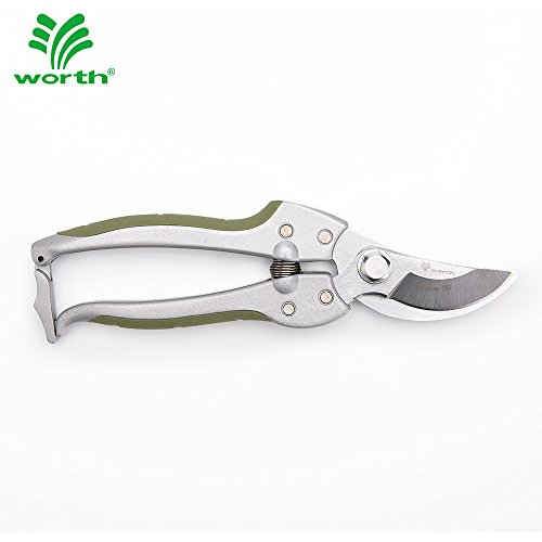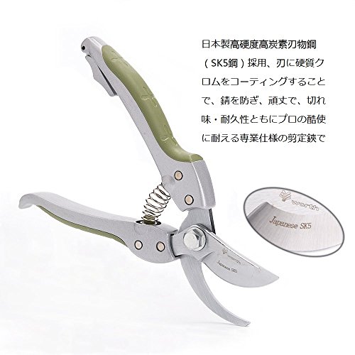 WORTH GARDEN 園芸用はさみ メーカ直販 剪定鋏 SK-5スチール刃 アルミ柄 樹脂グリップ (緑)