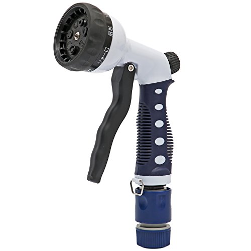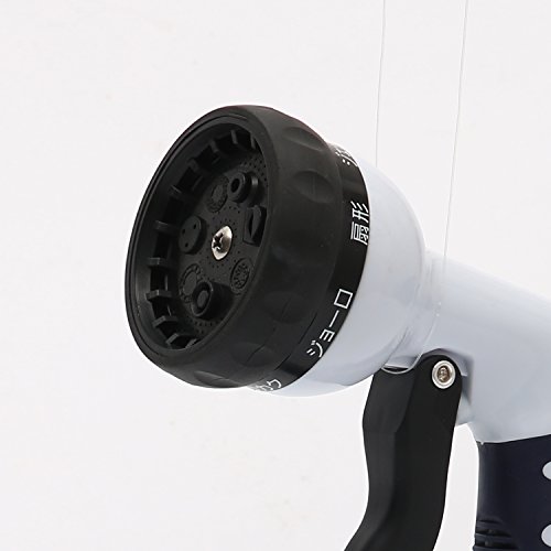 - 7パターン散水ノズルは切替ダイヤルで水流切り替え可能 コウカク,ジョーロ,扇型,ジェット,シャワー,キリ,クリーン.*クリーンは放水用パターンではなく,内部洗浄用です。背上部にある水量調節ツマミを左右に回して,水量調整が可能です.ストッパーでレバーに掛けると通水状態を維持できます