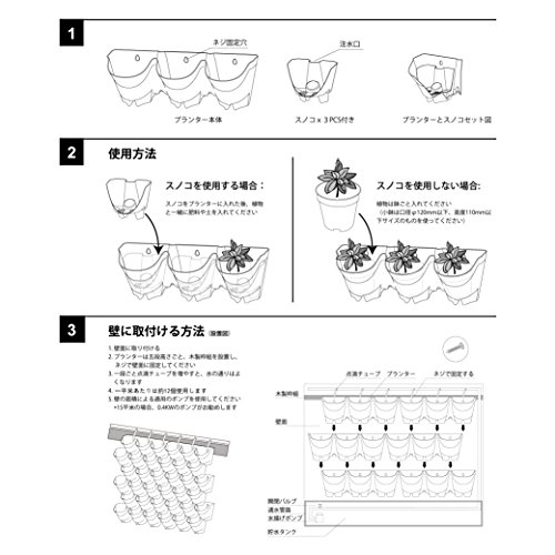 プランターを積み重ねて、美しい垂直植物の壁を作り、様々な植物を育てることができます、単独使用もできます 価格はプランター3個(9ポケット)セットです プランターサイズ:48x18x17CM、重量:約360g、材質:ポリプロピレン樹脂(紫外線防止カット剤入り) 一平米あたりは約12個を使用します