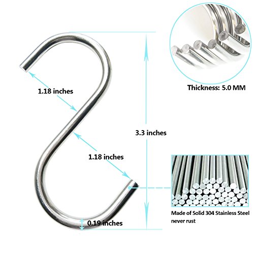 Heavy Dutyステンレス鋼S形状フック軸受30?kgまで、大きなサイズfor Hanging植物、キッチン鍋、シャワーカーテン???セットof 8 pack of 8