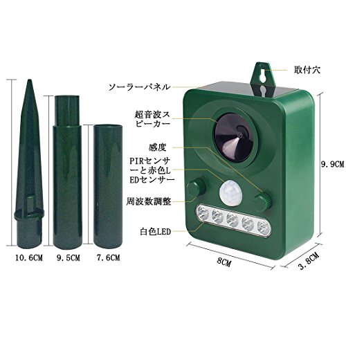 猫よけ WUUDI 動物撃退器 ソーラー充電 害獣撃退 庭園を保護 野良動物対策器 強化版