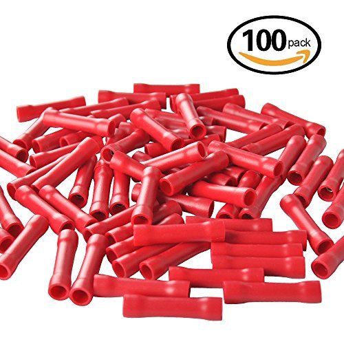 MUYI 100pcs Wire Butt Connector Crimp Terminal 16-22 AWG Assorted Insulated Straight Electrical Connectors (Red) [並行輸入品]