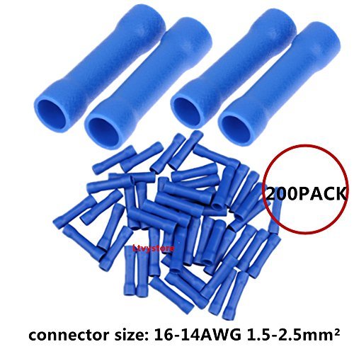Ltvystore 200PCS 16-14 Gauge Butt Insulated Splice Terminals Electrical Wire Crimp Connectors Kit Assortment SetWire range 1.5-2.5mm? Blue Color [並行輸入品]