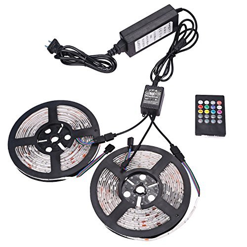 NEWSTYLE 2 Reels 12V 32.8Ft Flexible RGB LED Strip Light Kit Multi-colored 300 PCS 5050 LEDs LED Strip Kit & 2-ports 20key IR Music Remote 12V Power Supply IP65 Waterproof Adhesive Light Strips [並行輸入品]