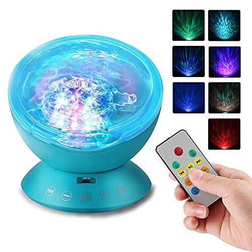 OTHA Remote Control Ocean Wave Night Light Projector 12 high light LED 7 color changing adjustable Music Player with Mini Speaker Supported Micro TF SD Card/USB/3.5mm AUX (Blue) [並行輸入品]