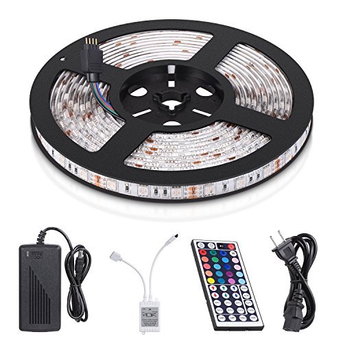 Youdepot 16.4ft/5m LED Strip Waterproof Color Changing RGB SMD5050 300led Flexible LED Light Rope with 44Key Remote+12V Power Supply for Home/Garden Lighting and Decoration [並行輸入品]