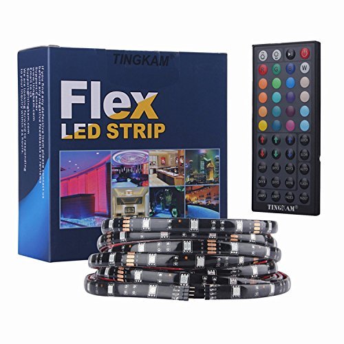 Tingkam? 16.4 ft 5M Waterproof 5050 SMD RGB LED Flexible Strip Light Black PCB Board Color Changing Decoration Lighting 150 LEDS Kit + 44 key Remote Controller+ 2.5A US Power Adapter [並行輸入品]
