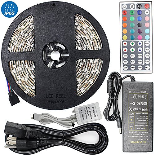 16.4ft RGB Multi-Color Flexible Waterproof(IP-65) Strip Light Kit 300 LEDs with 44key IR Remote Controller 3M Adhesive Tape Plug-and-Play Design as Decorative Lighting for Home and Commercial [並行輸入品]