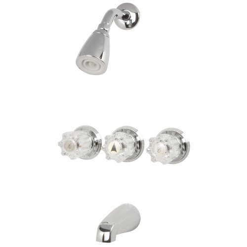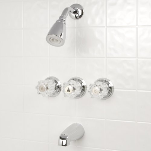 Beautiful and stylish tub and shower set that will give any bathroom an upgraded look;Three hole installation with 8 inch center set, with 2.5 GPM Shower Head;No-leak washerless design, quality construction;Backed by a Limited Lifetime Warranty;Shower arm, flange, classic acrylic knob handles, diverter handle, tub spout, easy to read instructions