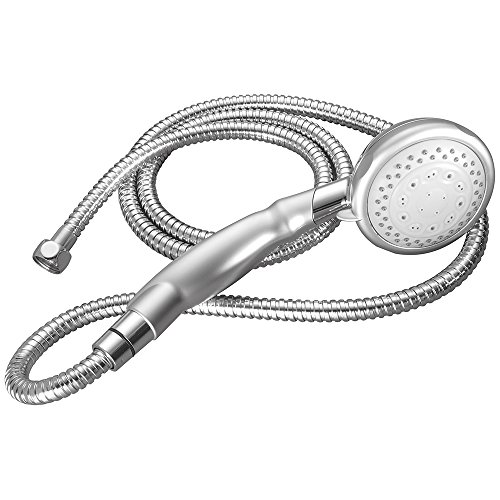 図で8679200仕上げ:クロムクロム機能が導入されています。5スプレー設定ハンドヘルドのシャワーヘッドです。-solid真鍮継手が含まれます。縮れのメタルホースなし。-carded。品:シャワーアームブラケット、72 "余分なリーチホース、ワッシャーとシールテープをトラブルフリーな取付が可能。オプションで構成されています。 – 白、またはクローム仕上げをしました。