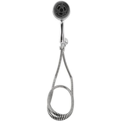 Color:Chrome Product Description 7635010B Finish: Chrome Features: -Shower head massager.-3 Spray setting.-Carded.-59'' Flexible hose.-Easy to install. Includes: -Setting includes full massage spray, pulsating action spray and drenching spray.-Includes shower arm connector bracket, flexible hose washers and thread tape. Construction: -Brass construction. From the Manufacturer 7635010B 3 Spray Setting Handheld Shower Massager, Chrome