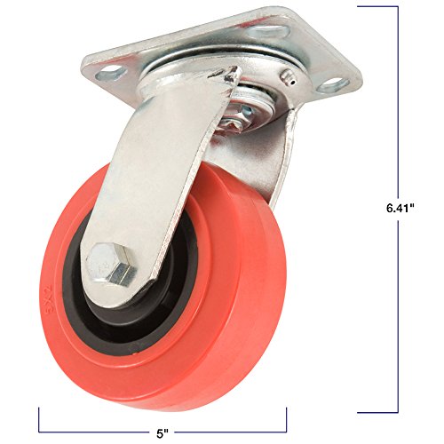 - Polyurethane Caster Wheel with Swiveling Top Plate - 5-Inch - 750 lb. Load Capacity - for Use on Hard Surfaces such as Concrete