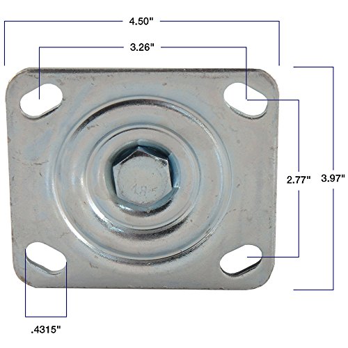 Superior to standard rubber casters in its resistance to grease, oil, cutting, and abrasions;This caster can be used on almost any dry factory floor or in garages where chemicals may be present;For Use On: Desks, Carts, Chairs, Tables, Stools, Toolboxes & many other products;Top Mounting Plate: 4.50x3.97 Bolt Pattern: 3.26x2.77 Bolt Hole: 0.4315 Overall Height: 6.41;Includes: (1) Polyurethane Caster, Wheel with Attachment Plate