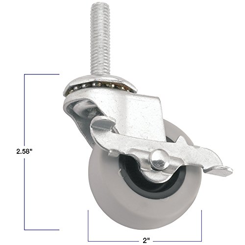- TPR Rubber Caster Wheel with Threaded Stem Attachment w/ Brake - 2-Inch - 80 lb. Load Capacity - Non-Marking for Hospitals, Food Service, & Other Institutional Applications