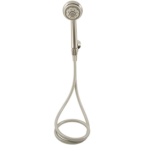 Product Description Waxman's HydroSpin 6 position brushed nickel handheld shower with shower arm mounting bracket and 6' extra reach hose. This shower has 6 different spray settings which include: spiral massage, rain, rain/spiral massage combination, aerated, rain/aerated combination and pause for every shower need.Water saving pause setting. From the Manufacturer Waxman's HydroSpin 6 position brushed nickel handheld shower with shower arm mounting bracket and 6' extra reach hose. This shower has 6 different spray settings which include: spiral massage, rain, rain/spiral massage combination, aerated, rain/aerated combination and pause for every shower need.Water saving pause setting.