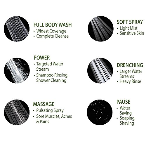 - This SimplyClean showerhead offers 5 unique spray settings: Full Body Wash, Power, Massage, Soft Spray & Drenching
