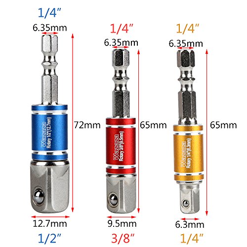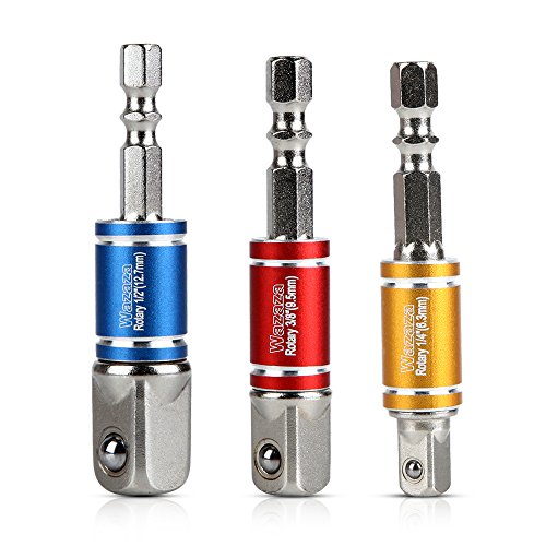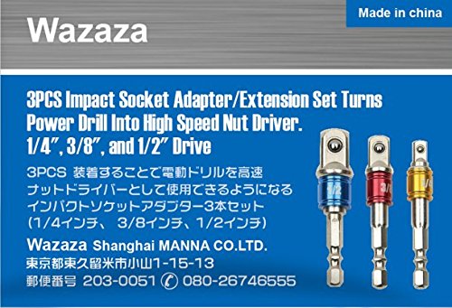 Wazaza 3PCS インパクト対応 装着することで電動ドリルを高速ナットドライバーとして使用できるようになるインパクトソケットアダプター3本セット(1/4インチ、 3/8インチ、1/2インチ)