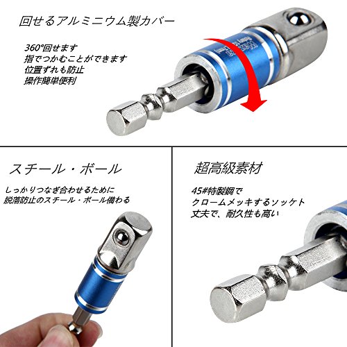 1/4インチ六角軸シャンク-1/2インチソケット対応ソケットアダプター×1