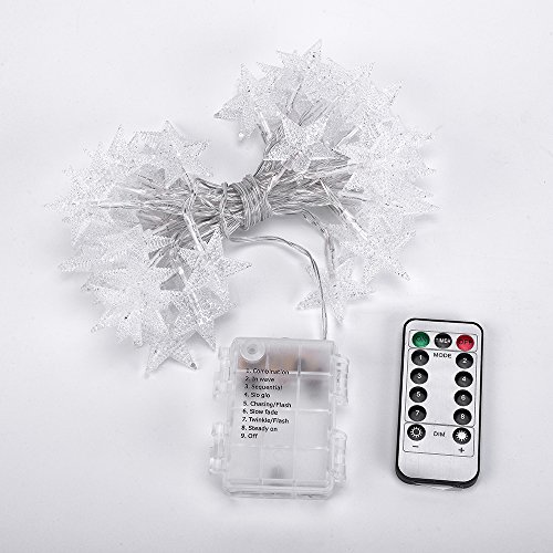 Weanas LED 飾りライト 星型 5m 50球 防水 8種点灯モード 調光対 応 電池式 電球色 リモコン付き
