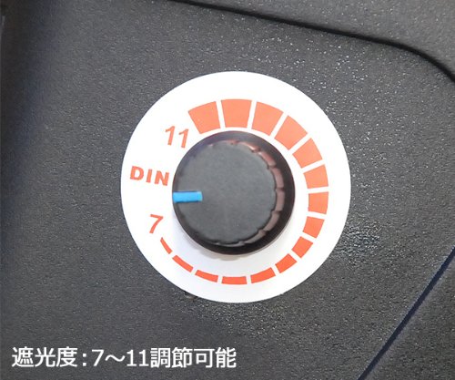 溶接作業の種類や状態に応じて、遮光度調節つまみで遮光度を調節できます。
