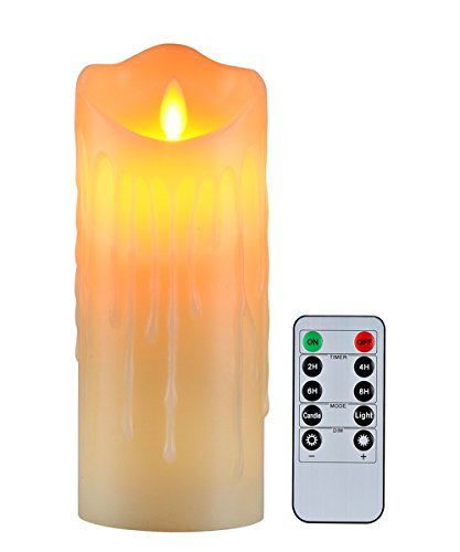 キャンドルライト、揺らぐ炎とワックスを垂らすのリアル感、単4形電池式(別売り)暖色光ledろうそく燈、リモコン付き、2/4/6/8時間を自動消燈設定、明るさも調整できる、パーティー、祈願、誕生日、記念日や結婚式により良い雰囲気作りが最適です、直径:7.5cm、高さ:20cm