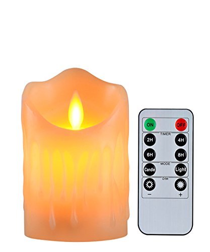 キャンドルライト、揺らぐ炎とワックスを垂らすのリアル感、単4形電池式(別売り)暖色光ledろうそく燈、リモコン付き、2/4/6/8時間を自動消燈設定、明るさも調整できる、パーティー、祈願、誕生日、記念日や結婚式により良い雰囲気作りが最適です、直径:7.5cm、高さ:8.5cm