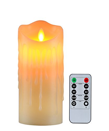 キャンドルライト、揺らぐ炎とワックスを垂らすのリアル感、単4形電池式(別売り)暖色光ledろうそく燈、リモコン付き、2/4/6/8時間を自動消燈設定、明るさも調整できる、パーティー、祈願、誕生日、記念日や結婚式により良い雰囲気作りが最適です、直径:7.5cm、高さ:18cm