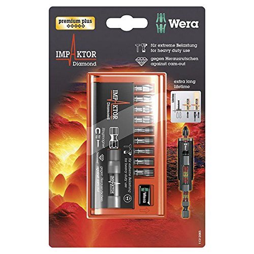 - This bit-check set from Wera includes an Impaktor Diamond bit holder and 9 bitshex screws suitable for Phillips, Pozidriv, Torx and
