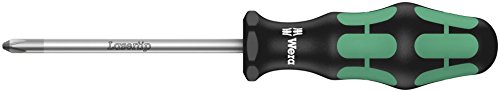 Wera Kraftform 355 Screwdriver Pozidriv 4 x 200 mm WER009325 Wera Series 355 Pozidriv tipped screwdriver with chrome plated and hardened steel blades. The Wera Lasertip tip bites into the screwhead, reducing cam out (prevents slipping out of the screw head) and eliminating the need for two handed screwdriving. The patented ergonomic multi-component Kraftform handle has been designed for faster more powerful and less tiring screwdriving action. Blade Length 200mmTip Size Pozidriv 4 point WER009325