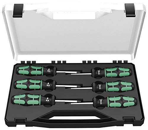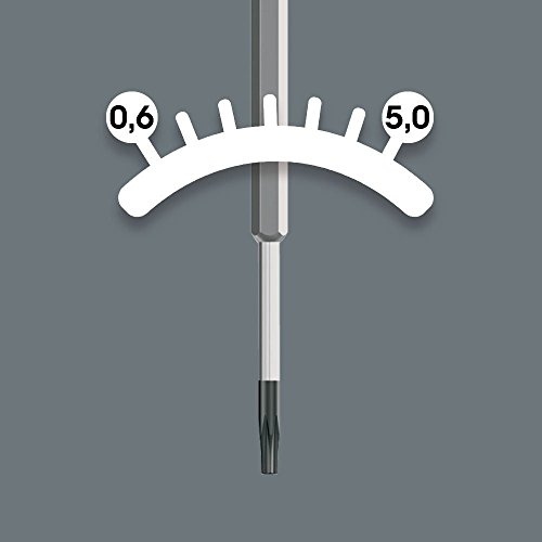 Wera Kraftform 6 Piece 300 TX/6 TORX Torque-indicator Screwdriver set is designed for torque controlled tightening to guarantee the safety of the screw connection. Torque-indicators have been factory pre-set to torque values recommended by leading carbide tool manufacturers. Wera torque tools have unlimited loosening torque to loosen seized screws. All Wera hand tools feature the trademarked ergonomic Kraftform handle, with hard and soft zones, that fits the shape to the hand for the ultimate in comfort and high-speed torque transfer. Calibration certificate included. Limited Life Time Warranty. Set contains 6 TORX torque indicators ? 0.6 NM/0.4 ft.lb (TX6), 0.9 Nm/0.7 ft.lb (TX7), 1.2 Nm/0.9ft.lb (TX8), 1.4 Nm/1.0 ft.lb (TX9), 2.0 Nm/1.5 ft.lb (TX10), 3.0 Nm/2.2 ft.lb (TX 15). Includes durable storage case with molded insert. Wera ? The Best Tools For The Job!