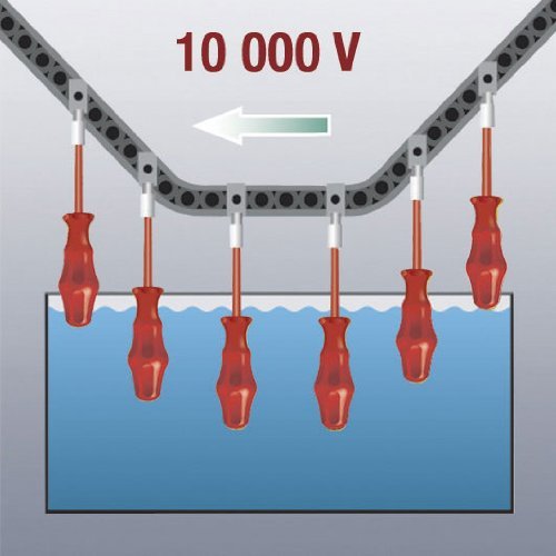 Wera Kraftform Classic Insulated 6 Piece Screwdriver set is designed for the do-it-yourself user. Each Kraftform VDE set has been put through vigorous testing in a water bath at 10,000 volts to guarantee safe working standards and meet 1,000 Volts standard. Wera Black Point tip and hardening process guarantee a long service life and increased corrosion protection. Anti-roll protection at base of handle stops screwdrivers from rolling away at workplace. Limited Life Time Warranty. Set contains 4 Slotted - 3/32”, 9/64”, 5/32”, 7/32”, and 2 Phillips - PH1 and PH2. Wera ? The Best Tools For The Job.