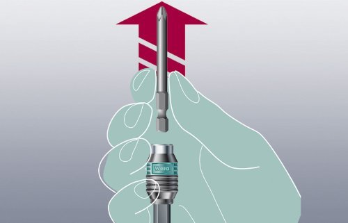 Wera 889/4/1 K Rapidaptor Universal Bit Holder is designed for rapid bit changes. Rapidaptor allows for quick one-handed bit change for both insert and power bits. Bits are easily inserted with press-in and self locking mechanism that holds bit securely and wobble free. Free-spinning outer sleeve stabilizes tool during screwdriving process, easily applying tool to screw to prevent slipping. Fits all 1/4” DIN 3126-C 6.3 and E 6.3 bits. Rapidaptor dimensions: 1/4” hex drive, 2-inch length. Wera ? The Best Tools For The Job!