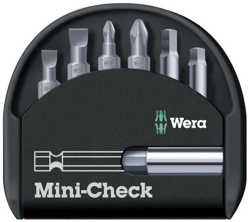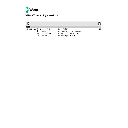 Wera 7 Piece Mini-Check Square Plus with universal bit holder is designed for compact and organized tool storage. Wera bit-checks feature a compact design to safely store bits and bit holders in a package that is thinner than the biggest tool contained. So slim it can fit into your pocket. Slide switch allows for one-handed opening of bit-check for easy tool removal. Sorted by drive and size, tools are easy to locate and return to proper position, making missing products easy to identify. Includes one Universal bit holder with 6 various bits; 2 - slotted, 1.0mm, 1.2mm; 2 - Phillips, PH1, PH2; and 2 - Square Plus, #1 and #2. Wera ? The Best Tools For The Job!