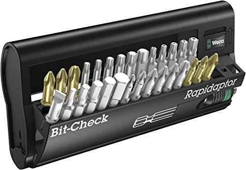 Wera 30 Piece BC Universal/30 Bit-check with Rapidaptor is designed for compact and organized tool storage. Torsion (TZ) bits are designed to prevent premature wear for improved service life. Rapidaptor Universal bit holder with quick-release chuck for rapid one-handed bit changes for insert and power bits. Wera bit-checks feature a compact design to safely store bits and bit holders in a package that is thinner than the biggest tool contained. So slim it can into your pocket. Slide switch allows for one-handed opening of bit-check for easy tool removal. Sorted by drive and size, tools are easy to locate and return to proper position, making missing products easy to identify. BC Universal/30 Bit-check set includes Rapidaptor Universal bit holder with quick-release chuck and 29 bits, 1 TZ Slotted bit - 7/32”; 5 Hex-Plus bits - 3mm, 4mm, 5mm, 6mm, 8mm; 6 TZ Phillips bits - 2 x PH1, 3 x PH2, PH3; 6 TZ Pozidriv bits - 2 x PZ1, 3 x PZ2, PZ3; 6 TZ TORX bits - TX10, TX15, TX20, TX25, TX30, TX40; 5 TORX BO bits - TX10 BO, TX15 BO, TX20 BO, TX25 BO, TX30 BO. Wera ? The Best Tools For The Job!