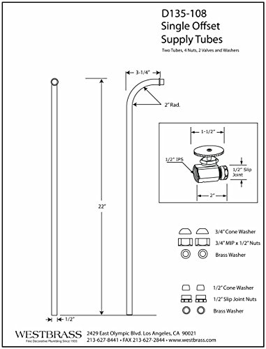 Westbrass Brass Single Offset Bath Supply Lines with 1/2 in. IPS Valves [並行輸入品]