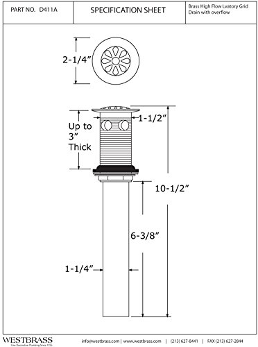 ウエストブラスr411 a-62 high-flowグリッド洗面所Drain withオーバーフロー穴、マットブラック